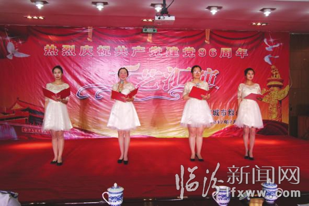 臨汾新聞網訊 6月27日,臨汾市城市綠化一隊舉辦了慶祝中國共產黨建黨96周年文藝匯演,全體職工以飽滿的熱情,唱出了綠化人的心聲,展示了綠化人的風采,表達了對黨的忠誠。