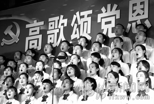 臨汾新聞網訊 6月28日,市區古城公園里歌聲嘹亮,堯都區水塔街轄區的居民們放聲歌唱,迎接“七一”黨的生日。 張旦 攝
