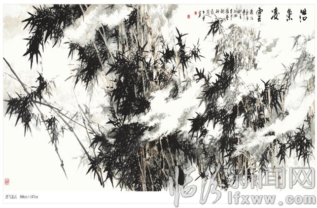 細(xì)品力軍先生的每一幅國(guó)畫墨竹作品,無論是鴻篇巨制,還是斗方小品,從構(gòu)圖立意,到揮毫潑墨,都獨(dú)具匠心。其筆墨率性灑脫,卻又不失法度,濃墨沉穩(wěn)凝重,淡墨清雅不浮。濃淡相融時(shí),墨暈過度自然,不臟不膩,韻味無窮,賞心悅目;色墨交匯處,墨色柔和自然,墨不礙色,色不礙墨,相輔相成,相映成趣。