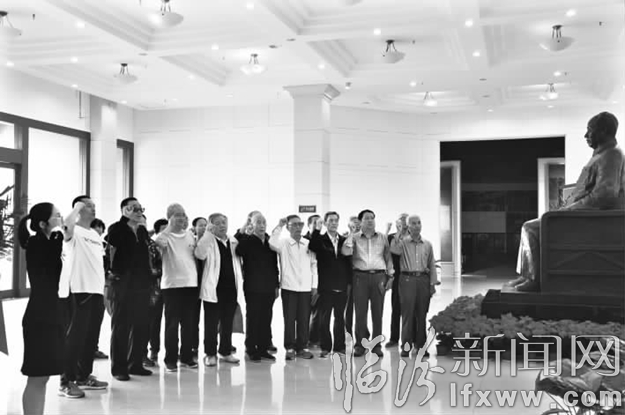 臨汾新聞網訊 為深切緬懷革命先烈的豐功偉績,近日,市老干部局組織30名離退休老干部參觀了晉國博物館和愛國主義教育基地彭真故居暨生平業績紀念館。圖為老干部們在彭真雕像前重溫入黨誓詞。
