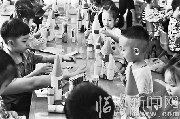 臨汾新聞網訊 國慶節到來之際,山西師范大學幼兒園中二班開展了“送給祖國媽媽的生日禮物”親子手工活動,提高了孩子們的創新動手能力。圖為中二班小朋友在展示作品。
