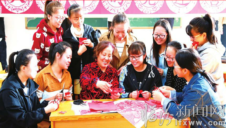 臨汾新聞網訊 10月20日,山西師范大學現代文理學院教育系14名大學生在民間剪紙藝術家梁春蘭的悉心講解下,認真學習剪紙技藝,通過剪紙作品表達對偉大的黨和祖國的熱愛之情。