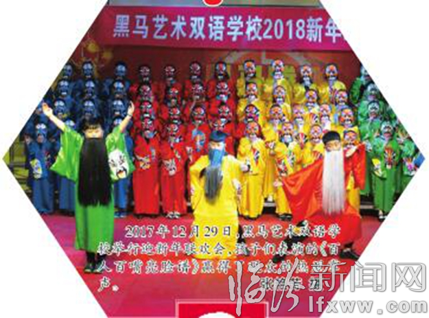 2017年12月29日,黑馬藝術(shù)雙語學校舉行迎新年聯(lián)歡會,孩子們表演的《百人百嘴亮臉譜》贏得了觀眾的熱烈掌聲。