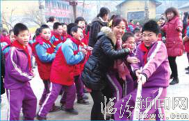 臨汾興國實驗學校小學部的師生們通過拔河比賽等趣味運動慶祝元旦。記者 閆銳鵬 攝