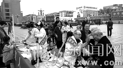 臨汾新聞網訊 3月5日,在市區平陽廣場,我市同仁眼科醫院的醫療服務志愿者在為市民檢查視力。當日,該醫院結合學雷鋒活動紀念日,開展了“關愛家人,愛護視力”廣場義診活動,通過現場咨詢、義診以及發放藥品的形式,弘揚雷鋒精神,服務臨汾市民。