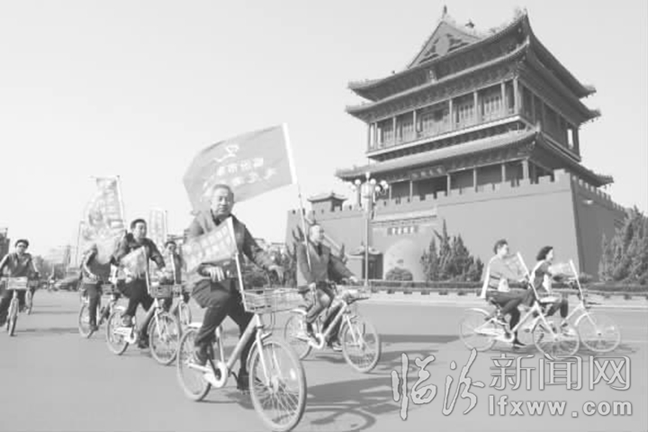 此次活動負責人表示:今年全省旅發大會將在臨汾舉辦,我們在車上綁了一面‘預防控制疾病助力旅發大會’的旗幟,用實際行動,向市民傳達綠色出行、科學運動預防疾病的理念,為旅發大會鼓勁加油。”記者郝海軍攝
