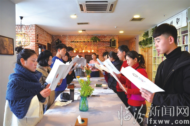 臨汾新聞網訊 3月31日,在我市藝善享書苑熙妍堂讀書會上,市民在誦讀《弟子規》。藝善享書苑熙妍堂讀書會本著“共讀、共學、共享、共成長”的宗旨,提供讀書會公益平臺,家長可以在這里共讀經典、學習家庭教育常識、分享讀書收獲和感悟,提升自身素質。