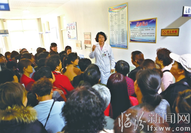 臨汾新聞網訊 近日,市第二人民醫院組織婦產科、普外科專家,來到臨汾市堯都區金殿衛生院進行義診普查活動。圖為婦產科專家為婦女進行宮頸癌、乳腺癌的早期預防、普查及健康知識講座。(王輝耀)