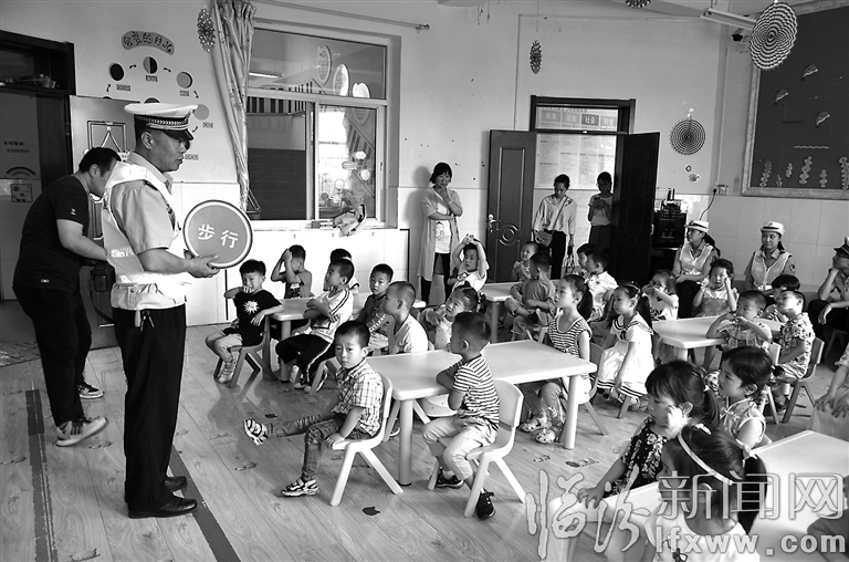 課堂上,民警針對(duì)幼兒的認(rèn)知和接受能力,利用交通宣傳卡片向孩子們講解了基本的交通安全標(biāo)識(shí)、標(biāo)志,并現(xiàn)場(chǎng)演示了交通手勢(shì)操,通過寓教于樂的講解,使小朋友們對(duì)安全常識(shí)有了更深刻的記憶。