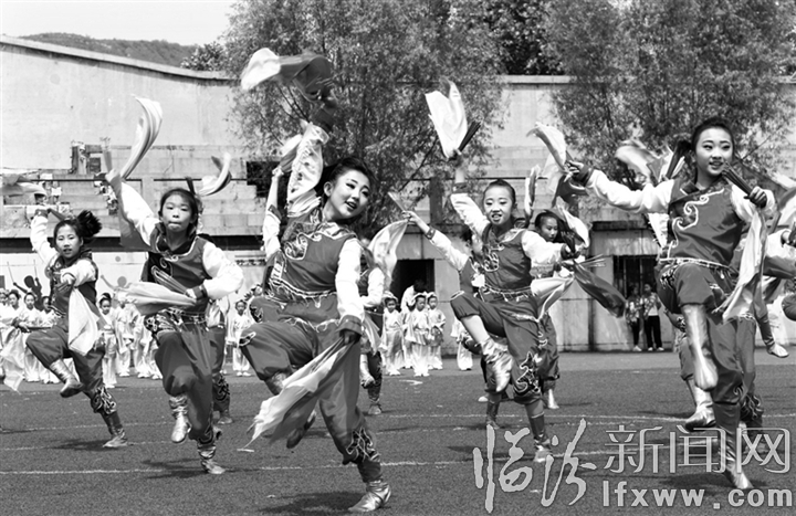 圖① 古縣城鎮小學全體師生歡慶“六一”兒童節。 王彬 攝