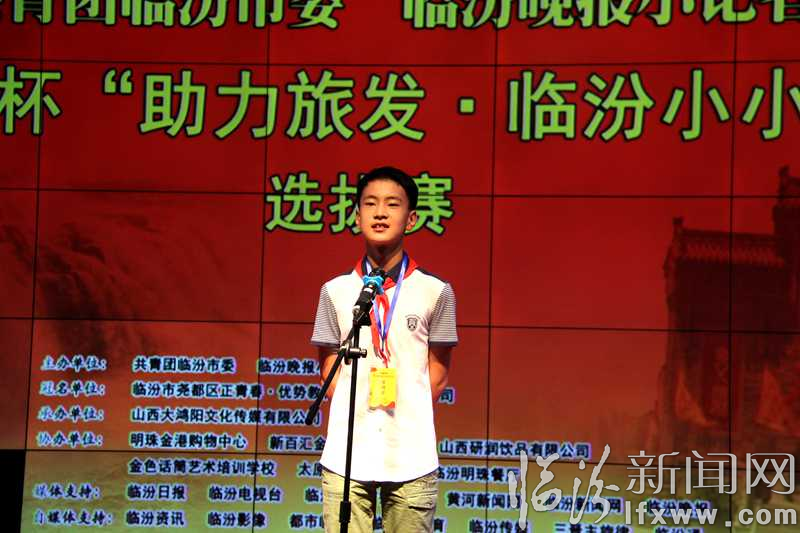 7月中旬到7月底為決賽階段,進入決賽的選手現場隨機抽取演講內容即興講演,時間控制在5分鐘之內,最終評選出“家鄉小小代言人”20名,“家鄉活力之星”10名。決賽中勝出的20名“家鄉小小代言人”直接參與助力旅發大會《臨汾歡迎您》專題宣傳片的拍攝。