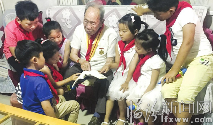 6月28日,在黨的生日到來之際,堯都區(qū)車站街辦事處建設(shè)社區(qū)15分鐘便民圈的志愿者和一些少先隊(duì)員看望了家住臨運(yùn)小區(qū)的抗戰(zhàn)老兵、老黨員、百歲老人沈永亮。沈老給大家講述了自己的革命經(jīng)歷,勉勵(lì)少先隊(duì)員要將中華民族的優(yōu)秀品質(zhì)傳承下去,好好學(xué)習(xí),將來更好地建設(shè)祖國(guó)、建設(shè)家鄉(xiāng)。記者郝海軍攝