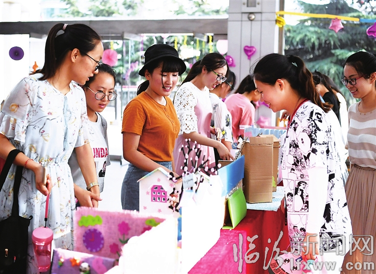近日,山西師范大學(xué)教育科學(xué)院學(xué)前教育專業(yè)舉辦了以“藝話童心”為主題的手工作品展,并進(jìn)行了義賣(mài)活動(dòng),義賣(mài)款項(xiàng)將通過(guò)愛(ài)心渠道捐給更多喜歡藝術(shù)的孩子們。(饒二保 劉國(guó)欣 攝)