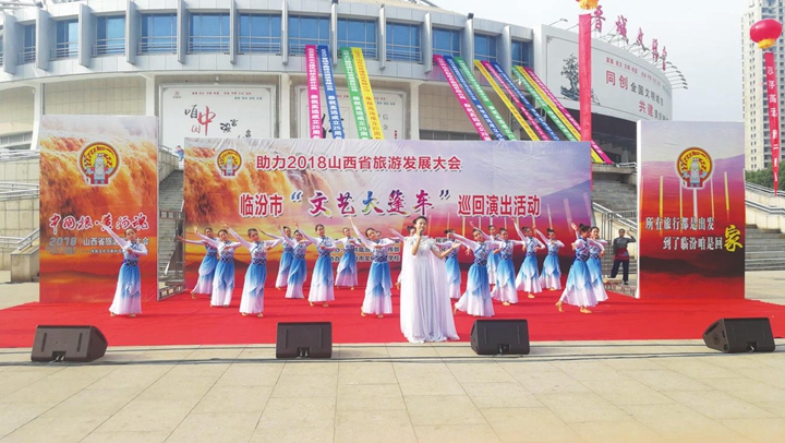 臨汾新聞網訊 連日來,氣溫飆升。助力2018山西省旅游發展大會——臨汾市“文藝大篷車”巡演隊顧不上天氣炎熱、舟車勞頓,馬不停蹄從運城趕往晉城又奔赴長治,頂著烈日奉上一場場充滿“臨汾味”的文藝演出,讓更多人知曉“所有旅行都是出發,到了臨汾咱是回家”。