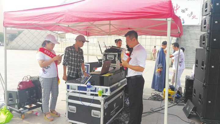 經過簡單治療,他們不顧身體有恙,堅持歸隊演出;裝臺6小時、卸臺4小時,后勤組忙得腳不沾地,幾乎沒有休息的時間;為了呈現更好的演出效果,市群藝館館長、巡演隊隊長任江波及時“打前站”,多方協調場地的選址、場地的電力及各部門的配合,以確保演出順利進行。