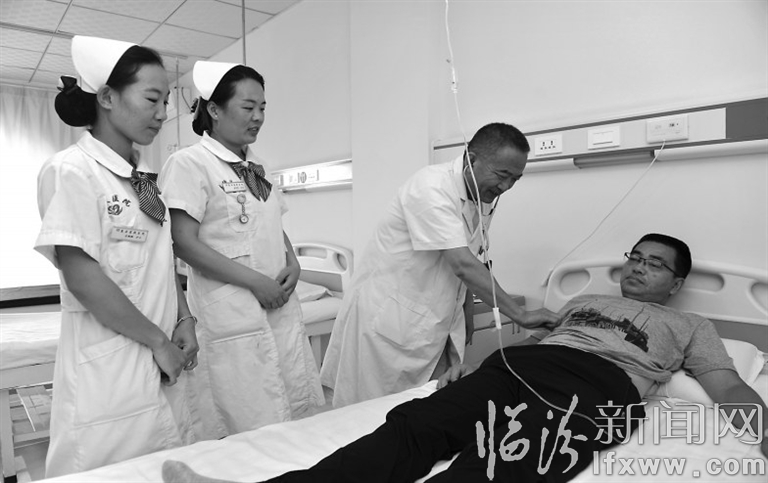 8月6日,在襄汾莉軼醫院,值班醫護人員在為患者檢查身體。該醫院開診以來以“安全至上的技術,溫馨舒適的服務”為理念服務于患者,醫護工作除了具備專業技能外,加大對患者人文關懷,以有效、便捷、溫馨、和諧、共享的優質服務,為患者提供親情化和人性化的服務。記者 閆銳鵬 攝