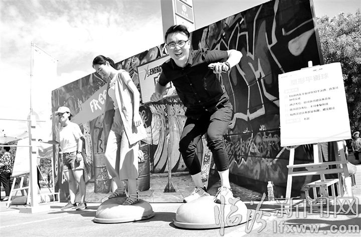 臨汾新聞網(wǎng)訊 近日,“2018安利紐崔萊營(yíng)養(yǎng)中國(guó)行健康塑形大篷車(chē)”抵達(dá)我市,開(kāi)展為期兩天的健康塑形活動(dòng),為市民帶來(lái)健康體測(cè)、專(zhuān)家講堂、營(yíng)養(yǎng)餐試飲等一系列體驗(yàn)活動(dòng),提升居民健康素養(yǎng)和科學(xué)的健康理念。圖為市民在體驗(yàn)“塑性平衡球”健康游戲。