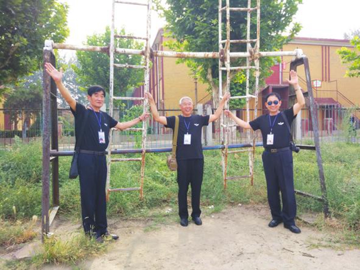 “那時候還沒有這座樓”“操場沒有什么變化”這里是當年的理論教室”……重回母校,這些發染銀霜的老者們仿佛又回到當年翱翔藍天、激揚青春的歲月,他們再次爬上平衡旋轉器、滾輪,雖然生了銹,可還能轉得動,以前這是我們每天都要訓練的項目,再次站到上面,心情有些復雜。”“看到學員樓覺得十分親切,仿佛又看到了同學們青春的身影。”很多學員撫摸著學員樓的墻皮,心潮澎湃。