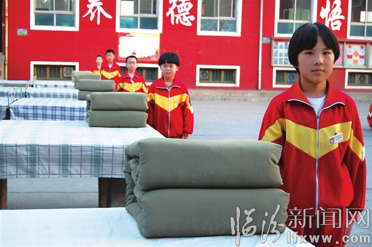 近日,襄汾縣康杰小學(xué)開展了五年級至七年級疊軍被比賽。小選手疊軍被技藝高超、利落嫻熟,一招一式都標(biāo)準(zhǔn)規(guī)范,不到5分鐘就將有棱有角的軍被疊好,受得評委和觀看學(xué)生的稱贊。(吳建會 李愛芳 王俊紅 攝)
