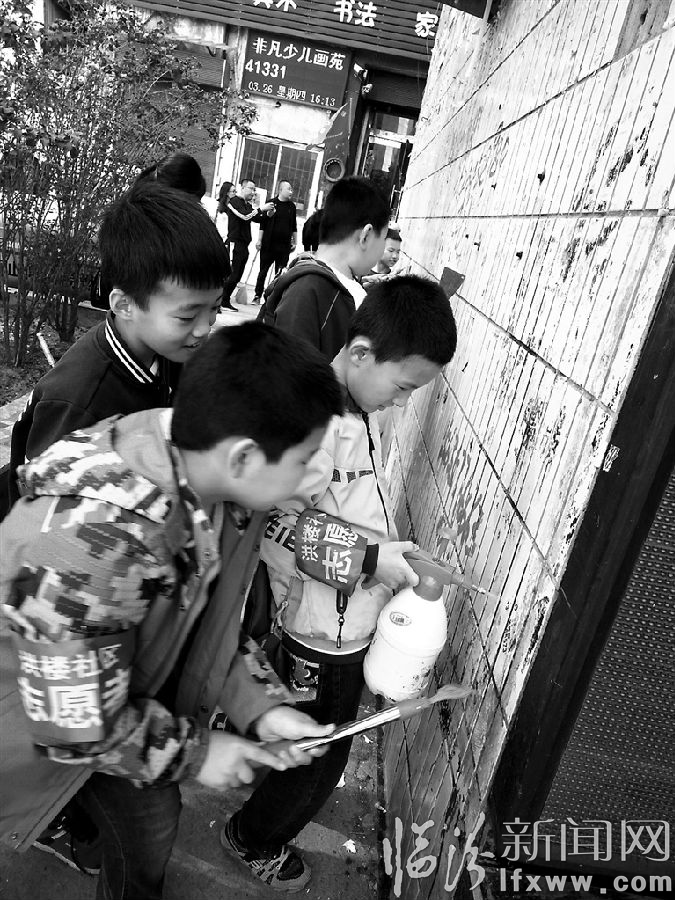 10月7日,堯都區(qū)洪樓社區(qū)和南街小學(xué)五(二)班的同學(xué)們一同開展了“魅力堯都——我是行動者”環(huán)保主題社會實(shí)踐活動,針對轄區(qū)的“牛皮癬”小廣告進(jìn)行集中清理,著力營造“干凈整潔、文明有序、優(yōu)美靚麗”的環(huán)境。圖為孩子們用鏟子清理墻壁上的小廣告。記者 劉晚 攝