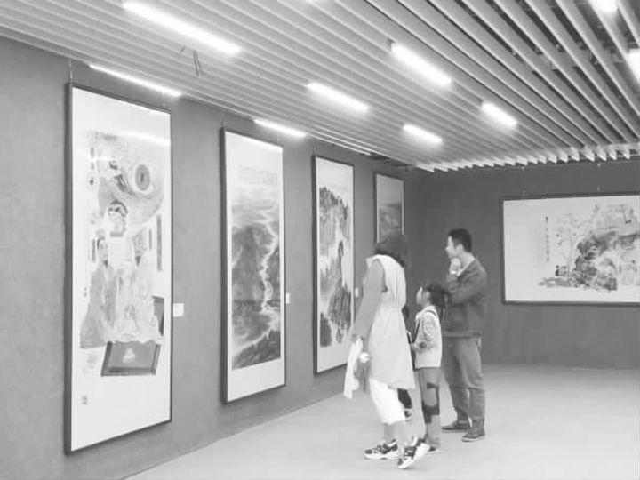 而在不遠處,一觀眾在欣賞完畫作后有感而發,在留言本上揮毫潑墨“大美臨汾”。這名觀眾名叫潘國梁,現為臨汾市眉戶團團長,國家一級演員。“品味每幅作品,都很有特色。通過國畫這一獨具魅力的藝術表現形式,充分展示了臨汾絢麗多彩的自然景觀、厚重悠久的歷史文化、文明開放的城市形象和日新月異的時代風貌。”潘國梁說,“生活在這么美麗的城市,人民的幸福指數特別高。”