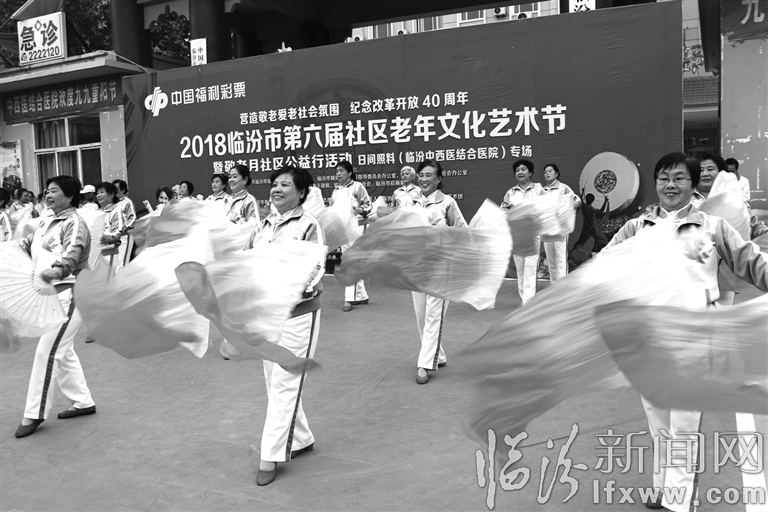 10月17日,堯都區臨紡社區夕陽紅舞蹈隊正在表演長綢扇舞《火火的中國》。當天是重陽節,堯都區民政局、區慈善總會舉辦了主題為“營造敬老愛老社會氛圍 紀念改革開放40周年”的專場演出活動,市老齡志愿公益協會組織15支表演隊進行了精彩的文藝演出,受到了現場觀眾的好評。