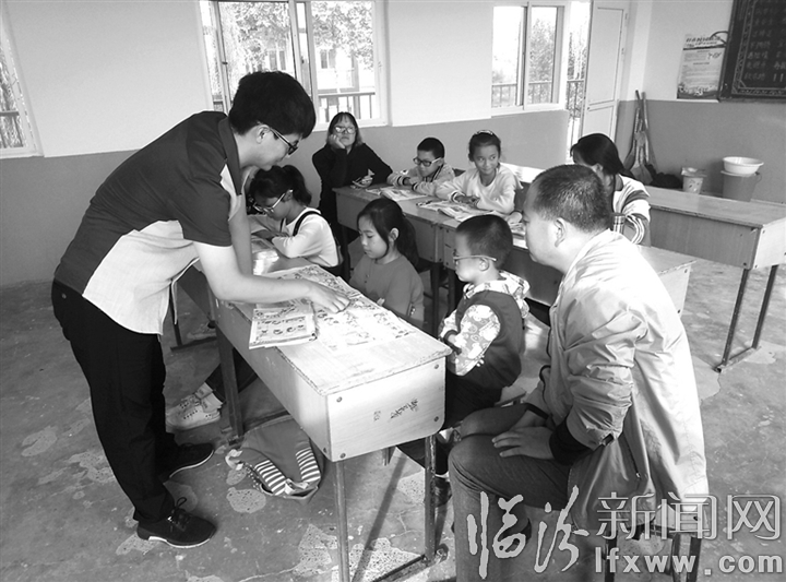 臨汾新聞網訊 市質監局檢驗測試所外派浮山縣天壇鎮掛職干部張帥、王思博在工作之余,義務到天壇鎮后交村小學、諸葛村小學教英語課程,得到了廣大師生和學生家長的廣泛好評,充分展現了扶貧工作人員情系村民、真誠付出。圖為兩名掛職干部在義務輔導學生時的場景。