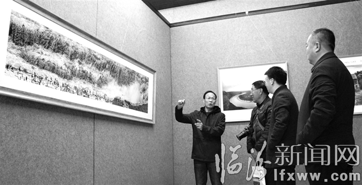 臨汾新聞網訊 11月24日,我市攝影家邱啟明向參觀者講解作品《黃河魂》拍攝創作經歷。當日,“中國龍·乾坤灣”國際攝影大賽獲獎作品在市文旅藝術館展出,集中展現了我市深厚的黃河人文底蘊。