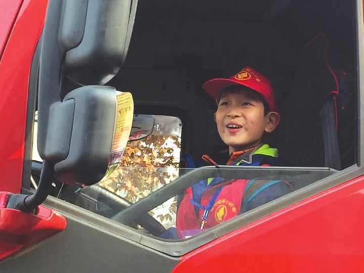 聽完交警的講解,小記者們依次坐上駕駛員位置,切身體驗盲區范圍。小記者趙子博表示,坐在駕駛位置上,幾乎什么都看不到,所以小朋友一定要遠離大貨車。