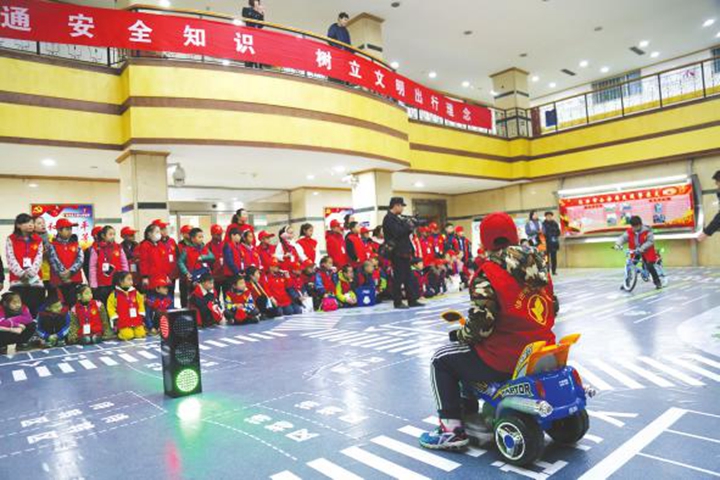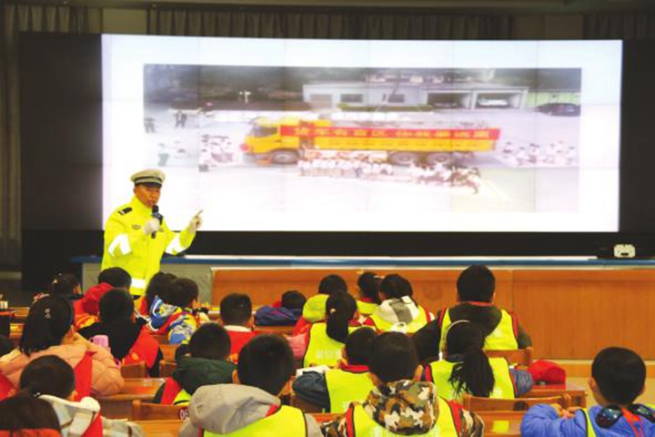 “回家以后,我要考考爸爸,不僅要讓他記住這些手勢,還要認識到交通安全的重要性!”小記者郭鈺瑤堅定地說,“從今天開始,我一定要做好交通安全監督員工作,時刻監督父母遵守交通法規。”樂體驗交通陋習無處藏“太陽升起來了,美好的一天又開始了,哎呀!馬上要遲到了,請各‘車輛’以最快的速度到達目的地……”交警話音剛落,一輛輛“車”飛快地沖向了終點,只見有的小汽車占了公交車道,也有非機動車行駛在機動車道上。此時,圍觀的小記者們紛紛指出了其中的“交通違法行為”—— —“公交車改道”小汽車跑得太快撞到了行人”……奇怪,室內怎么會有小汽車、公交車呢?原來,為幫助小記者更加形象地理解交通安全,交警特別設計了一節生動有趣的“cosplay交通情景課”,數名小記者頭上戴著車輛以及指示標志,將日常生活中的交通情形搬到了課堂上。
