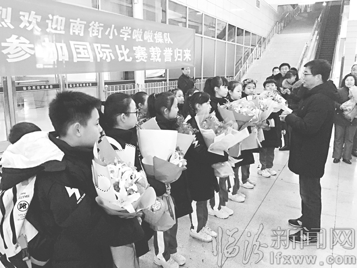 臨汾新聞網訊 “孩子們為國爭光,太棒了!”12月12日傍晚,臨汾西站出站口上演了激動人心的一幕,等待許久的老師和家長們為凱旋的臨汾市南街小學啦啦操代表隊獻上花環和捧花。受國家體育總局啦啦操委員會委派,該代表隊赴日本參加2018日本啦啦操國際公開賽,一舉奪得兒童組集體街舞第二名、兒童組一級集體技巧第六名的好成績。