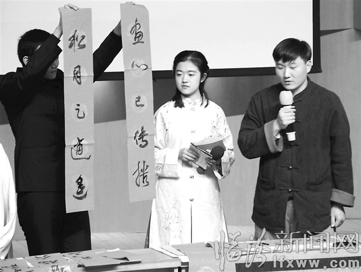 臨汾新聞網訊 日前,山西師范大學新成立的“華章國學社”在校音樂廳舉辦了“弘揚傳統文化,傳承國學經典”主題晚會,該社團表演了古風舞蹈《昭君出塞》、古琴彈奏《廣陵散》、朗誦《正氣歌》,現場展示了武術、書法等,以正能量闡述了對國學的熱愛,旨在使當代大學生領略優秀傳統文化,博采中華文化精華。