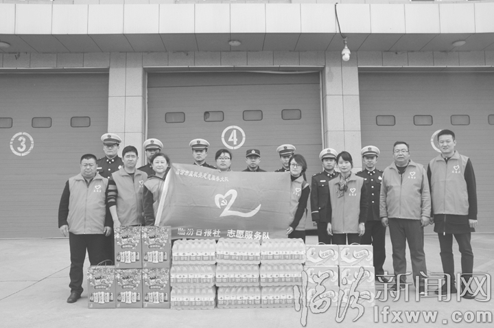 臨汾新聞網訊 向“逆火英雄”致敬。4月13日下午,臨汾日報社的志愿者們來到市公安消防支隊開發區中隊為他們送上了礦泉水、牛奶等慰問品。