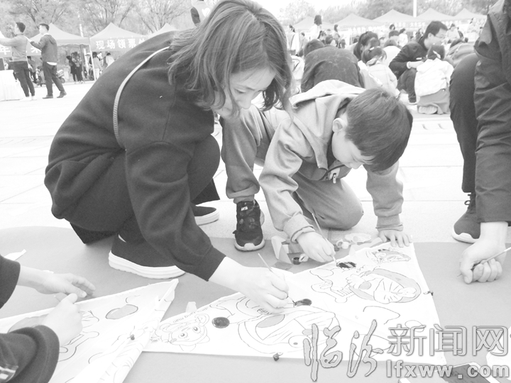 當(dāng)天上午,來自我市的1000余名學(xué)生在九州廣場中央,用手中的筆和顏料,在風(fēng)箏上畫出了精美的圖案,既有動畫人物、昆蟲、鳥獸,也有象征美好寓意的“鯉魚跳龍門”雙喜登眉”等。小學(xué)生動手能力強,有自己的繪畫思路,畫起來非常輕松;年齡較小的幼兒園小朋友則在家長的指導(dǎo)下,一筆一畫,涂得也很認(rèn)真。風(fēng)箏畫好后,孩子們陸續(xù)來到廣場的寬闊地帶,用稚嫩的小手拉起風(fēng)箏線,歡快的奔跑、嬉戲,廣場上瞬時出現(xiàn)了“忙趁東風(fēng)放紙鳶”的情景。孩子們用放風(fēng)箏的形式,祝愿偉大的祖國繁榮昌盛。
