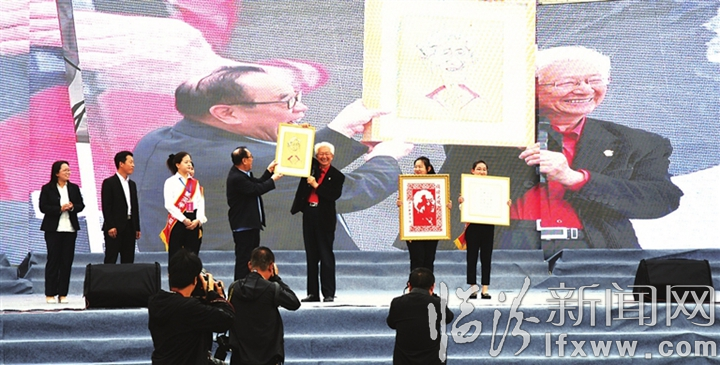 日前,由洪洞縣委宣傳部主辦的新中國成立七十周年經典誦讀會上,央視著名主持人、朗誦藝術家陳鐸飽含深情地朗誦了《鄉愁》《何滿子》,讓觀眾深受感染,感受到古詩詞的優美、經典的無窮魅力。圖為新英學校負責人向陳鐸贈送印有陳鐸頭像漫畫的禮物。