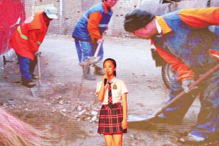 “最令我印象深刻的是環衛子弟的詩朗誦,他們‘申訴’爸爸媽媽很少陪伴自己,卻把更多的時間留給大街。”看到情深處,場外小觀眾馬悅盈眼眶濕潤了,“每當我看到環衛工叔叔阿姨時,他們都拿著掃帚在認真清掃街道。走在煥然一新的上學路上,我的心情特別舒暢,感謝他們的付出。我真心想為他們做些事,讓他們感受到來自小學生群體的溫暖與感謝。”青春正能量,奮斗正當時。