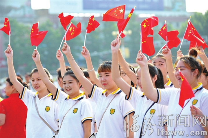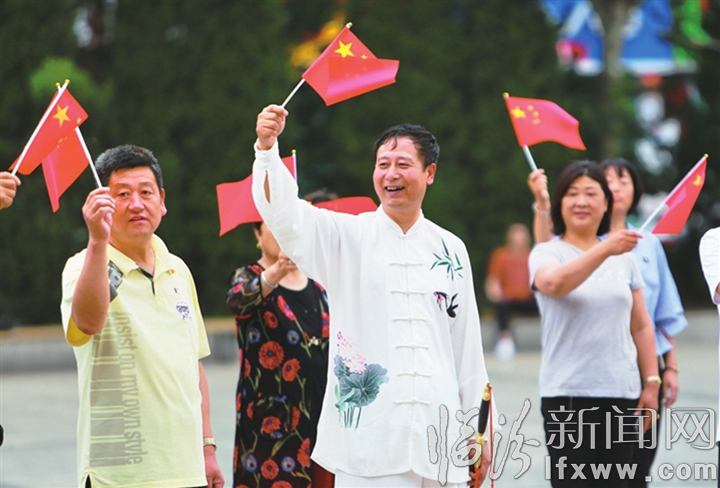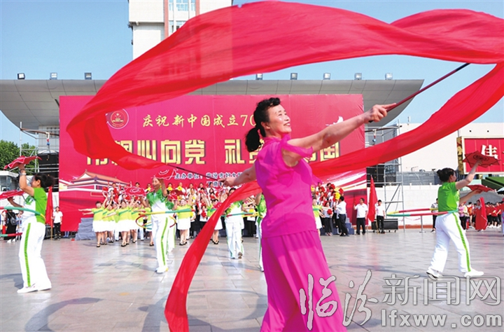 巾幗志愿者在“我和我的祖國(guó)”大型音樂(lè)快閃中表演舞蹈