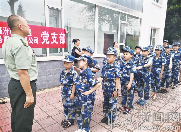 45分鐘很快過去了,孩子們像小鳥一樣飛到院子里,接受專項(xiàng)體能訓(xùn)練。只見他們興奮地穿上迷彩服,個(gè)個(gè)精神抖擻。“稍息、立正、向左轉(zhuǎn)、向右轉(zhuǎn)……在仝教官的指揮下,他們豎起耳朵,認(rèn)真做每一個(gè)動(dòng)作,動(dòng)作和隊(duì)形從無序到整齊劃一。”123,321,1234567……“在仝教官的教導(dǎo)下,孩子們認(rèn)真學(xué)習(xí)了軍營里的拍手方式,一遍、二遍、三遍,從低聲到聲音宏亮,儼然一隊(duì)軍營小士兵。