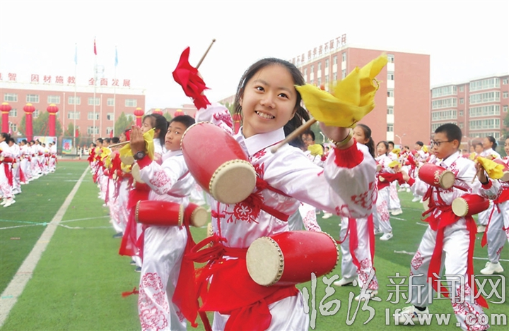 臨汾新聞網訊 10月17日至20日,臨汾同盛實驗中學舉辦了第十屆秋季田徑運動會,本屆運動會規模盛大,項目眾多,充分展示了同盛實驗人健康向上、團結奮進的精神風貌。運動會共產生288枚獎牌,14項成績打破校紀錄,5位同學達到國家三級運動員的標準。圖為學生們在開幕式上表演的情景。(梁秀娟 李慧)