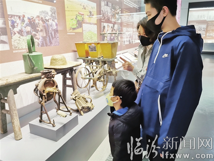 臨汾新聞網訊 4月12日,市民楊潔領著兩個孩子在臨汾博物館臨時展廳“觸摸舊時光”。