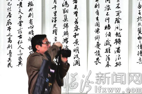 書(shū)畫(huà)愛(ài)好者參觀(guān)展覽。記者 張?zhí)N強(qiáng) 攝
