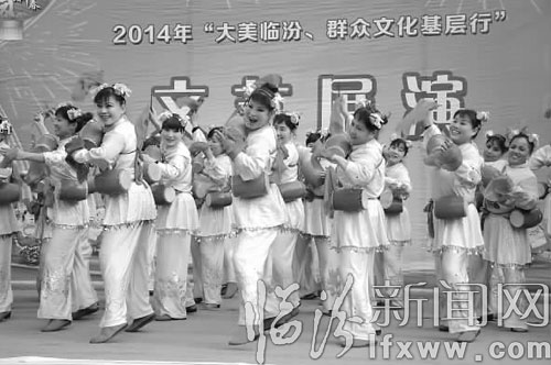 “‘大美臨汾群眾文化基層行’活動是全社會提供廣泛的公益性文化服務而實施的一項重大群眾文化活動。”臨汾市群眾藝術館負責人介紹,為了更加充分發揮公共文化服務單位的服務功能,保障城鄉群眾的基本文化權益,市文廣新局把2014年確定為“基層群眾文化活動年”,該館積極響應各級政府提出的文化惠民工程,不斷提升公共文化服務能力,依托人才優勢,創新“走基層”形式,走進街道、社區、企業等基層單位,利用文藝表演形式充分宣傳黨的十八大和十八屆三中全會精神;同時充分調動群眾的積極性,指導他們編排一些小型多樣的文化活動,豐富街道、社區、企業“兩節”期間的文化生活。