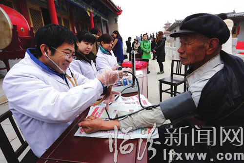 上午9時,學雷鋒小分隊與莉軼糖尿病醫院部分醫護人員趕到村中孔圣廟時,村中喇叭不停播放著“免費測量血壓、血糖、免費照相”的消息,村民們扶老攜幼聞訊趕來,即將竣工的孔圣廟內人頭攢動,場面溫馨。“不用上醫院,不用排隊掛號,在門口就能免費測量血壓、血糖。這樣的活動,能讓村民了解自己的身體情況。”一位村民告訴記者,他們村距離市區有10多公里,村民們看病、照相都不是很方便。平時,村中老百姓實在捱不過去,才會選擇去醫院就診,大多時候就是吃些藥,對于自己的身體情況并不十分了解,血壓、血糖更是長時間才能測量一次,聽到廣播里說有這樣的活動,他和鄰居們一起過來。