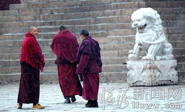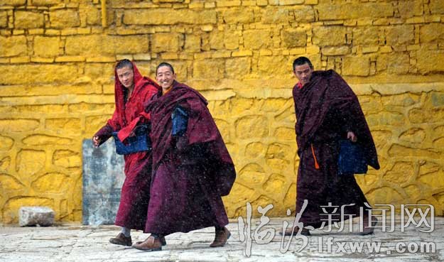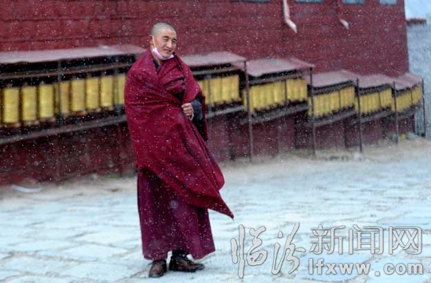 西藏的寺廟很多,像布達拉宮、大昭寺、小昭寺等眾多寺廟,但這些寺廟大多處于拉薩鬧市區,讓你的心一直靜不下來,在和西藏攝影人的采風過程中,遇到了天氣風云突變,瞬間飄起了雪花,匆忙中走進楚布寺,這里非藏族人是收費的,雨雪中也沒有人檢查,里面胡僧人很友善,面對鏡頭更多的是微笑和羞澀面對,這里僧人挺多,在匆忙的行程中,記錄下些許瞬間。