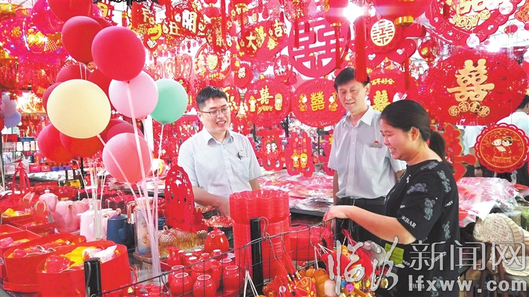 臨汾新聞網訊 近日,堯都農商行堯廟支行結合轄內市場商戶眾多的特點,開展網格化服務,針對性地了解客戶經營情況、詢問客戶金融需求,建立全覆蓋式客戶檔案,及時幫助客戶解決問題。圖為工作人員在新百匯市場內走訪商戶。