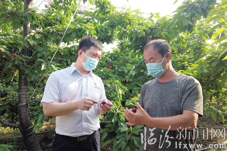 臨汾新聞網(wǎng)訊 近年來(lái),曲沃縣楊談鄉(xiāng)大力發(fā)展櫻桃種植產(chǎn)業(yè)。為助力櫻桃產(chǎn)業(yè)發(fā)展,曲沃農(nóng)商行萬(wàn)戶分理處工作人員主動(dòng)走訪,深入田間地頭,了解種植戶的種植情況,及時(shí)提供資金支持。圖為工作人員向種植戶了解櫻桃生長(zhǎng)情況。 本報(bào)記者 攝