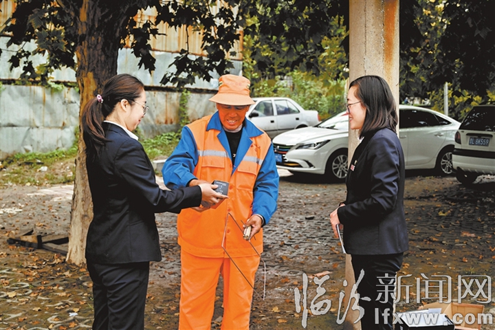 臨汾新聞網訊 入秋以來,氣溫驟降。翼城農商行心系環衛工人等戶外勞動者,為環衛工人送去雨傘、保溫杯等生活用品,傳遞農信溫暖,樹立“百姓銀行”良好形象。圖為工作人員向環衛工人贈送物品,奉獻愛心。