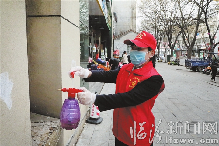 臨汾新聞網訊 為做好疫情防控工作,安澤農商行組織黨員、團員組成志愿服務隊,為防控疫情貢獻農信力量。圖為志愿者為周邊的商鋪、社區消毒。