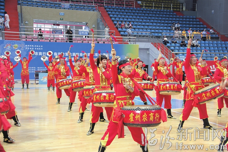 臨汾新聞網訊 近日,霍州農商行百人威風鑼鼓隊在“農商行杯”臨汾市第六屆運動會籃球比賽開幕式上精彩亮相。隊員們身著盛裝、神采飛揚,鏗鏘雄壯的鑼鼓聲響徹在場館上空,展現了霍州農信積極向上的良好形象,點燃了賽場的熱情。圖為表演現場。
