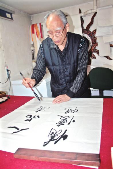(圖為李卯生在書房揮毫潑墨。)本報記者 劉晚 文/圖